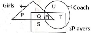 In the following figure, the triangle represents 'girls,' the rectangle represents 'players,' and the circle represents 'coaches.' Which part of the diagram represents girls who are players but not coaches?